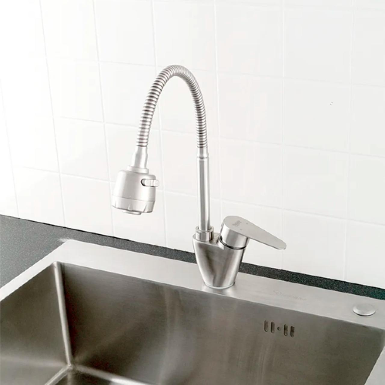 Смеситель для кухни с гибким изливом Potato P58310SN в элегантном серебристом исполнении станет идеальным дополнением для вашей кухни, сочетая в себе стильный дизайн и высокую функциональность. Изготовленный из нержавеющей стали 304, этот смеситель отличается прочностью и долговечностью. Сатиновое покрытие придает изделию современный вид, облегчает уход за ним, предотвращая появление отпечатков пальцев и загрязнений. Одной из ключевых особенностей смесителя является гибкий излив. Смеситель предлагает два режима струи, что дает возможность выбрать оптимальный вариант для различных задач от быстрого до бережного режима. Картридж диаметром 35 мм обеспечивает плавное и точное регулирование температуры и напора воды. В комплект входят гибкие подводки длиной 35 см. Благодаря своему универсальному дизайну, смеситель Potato P58310SN гармонично впишется в любой интерьер, будь то классическая кухня или современное пространство.