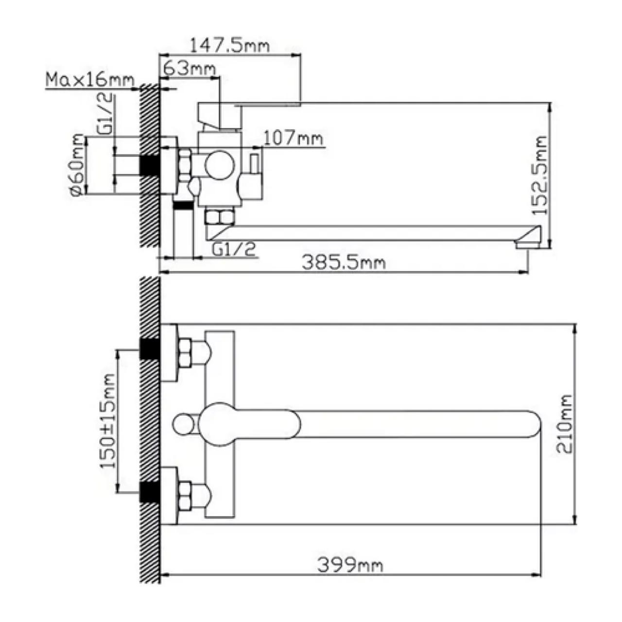 Комплектация: Смеситель; Шланг для душа 1,5 м; Эксцентрики; Настенный держатель для лейки; Душевая лейка из металла; Отражатели; Поворотный излив