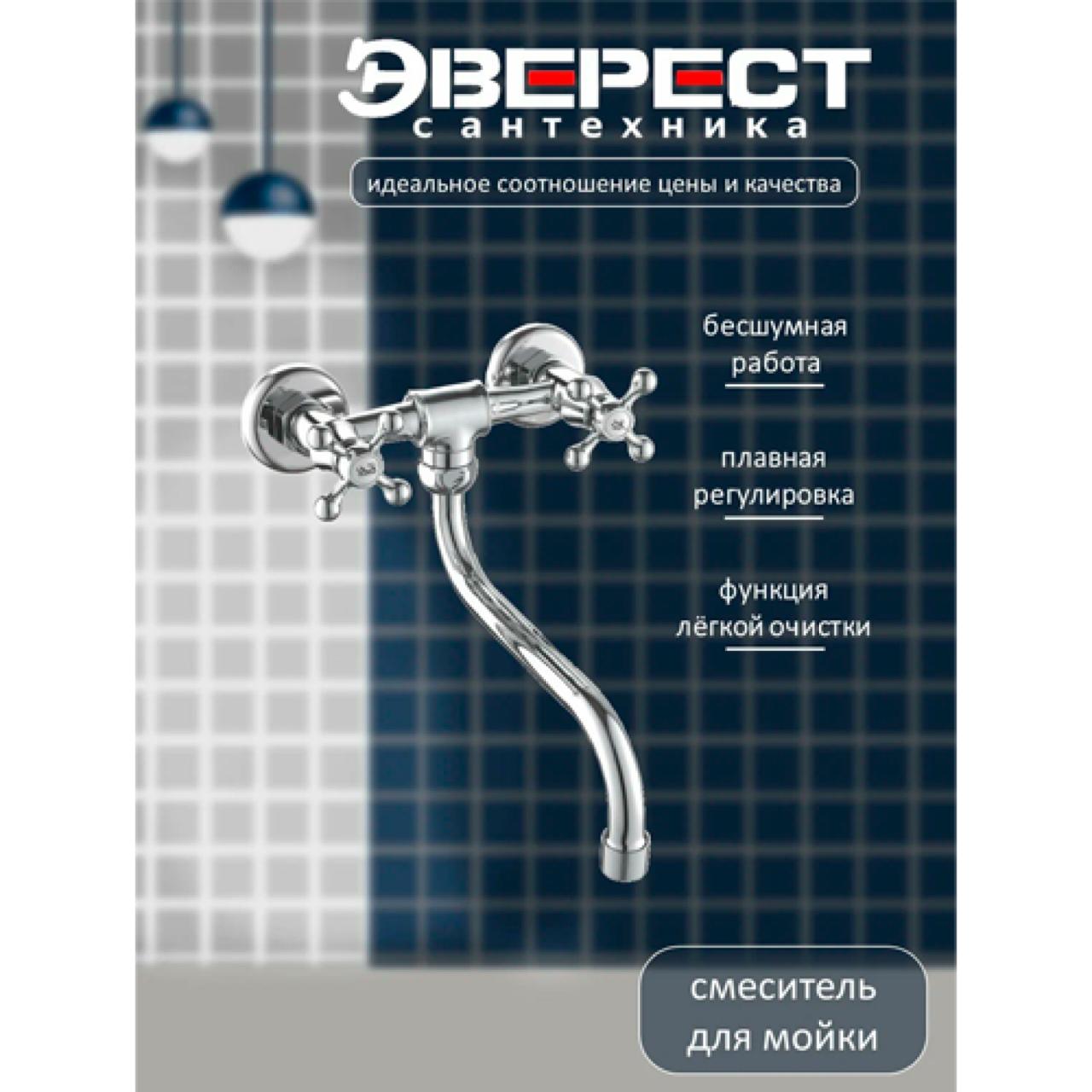 Смеситель для кухни Эверест B46-351 - это высококачественный продукт, который сочетает в себе функциональность и эстетику. Изготовленный из цинкового сплава, он обеспечивает прочность и долговечность. Смеситель монтируется на стену с помощью эсцетриков 3/4"х1/2" и конусных хромированных отражателей 3/4" из нержавеющей стали. Это обеспечивает надежное крепление и простоту установки. Излив у смесителя S-образный, круглый, поворотный. Длина излива от стены до аэратора составляет 25 см. Аэратор с пластиковой вставкой не ржавеет, долго не покрывается известковым налётом и легко очищается или заменяется. Хром-никелевое покрытие корпуса улучшает внешний вид, облегчает уход и продляет срок службы смесителя. Напор воды регулируется двумя латунными кран-буксами с керамическими пластинами и увеличенным сроком службы.