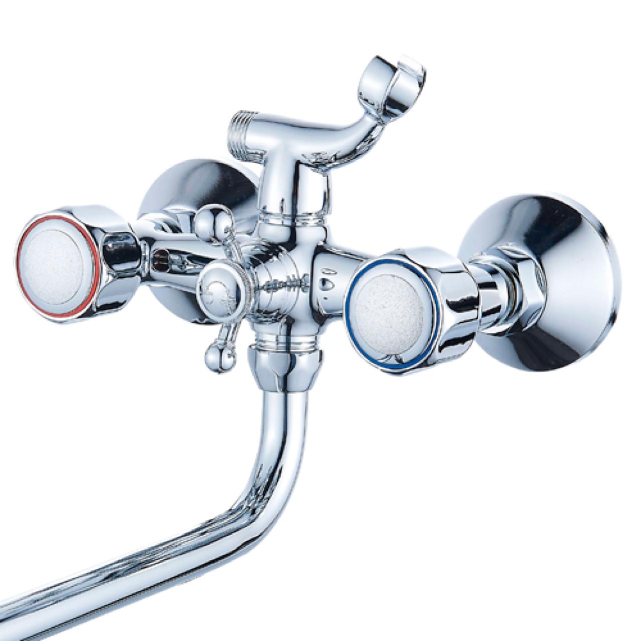 Универсальный двухвентильный смеситель Diadonna D80-225355 предназначен для использования в ванной комнате с душем. Модель изготовлена из прочного латунного корпуса с классическим глянцевым хромированным покрытием. Кран-буксы обеспечивают традиционное раздельное управление горячей и холодной водой. Смеситель оснащен длинным S-образным поворотным изливом (до 42 см), что удобно для обслуживания как ванны, так и раковины. В комплект входит весь необходимый душевой гарнитур: лейка, шланг и держатель.