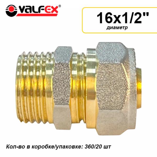 Соединитель обжимной с переходом на НР VALFEX 16 x 1/2" (360/20) K