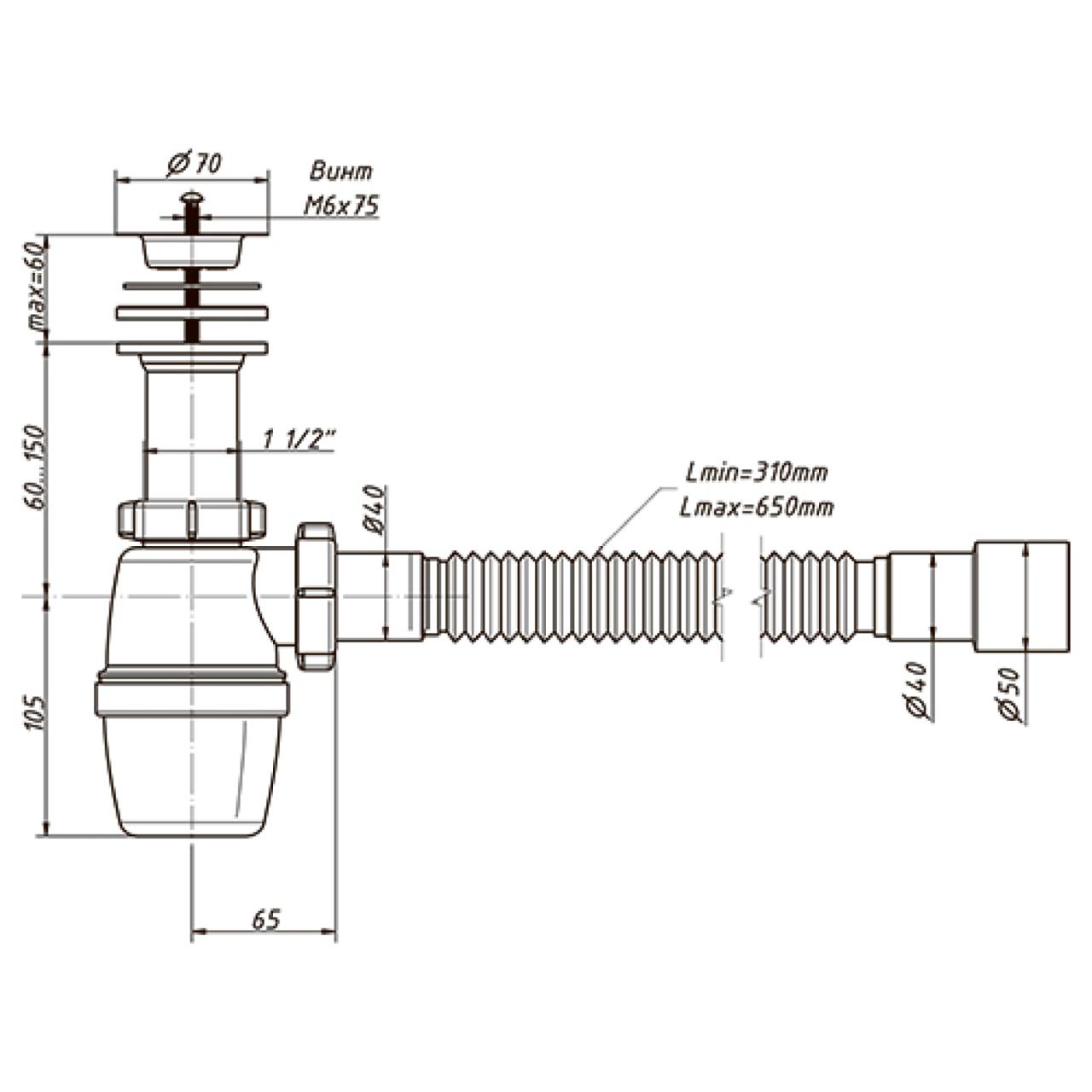 Габаритная высота сифона, мм: 165-255