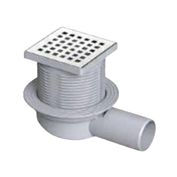 Трап вертикальный 100x100 мм выпуск Ø 50 мм, регулируемый, комбинированный затвор, решётка из нержавеющей стали VALFEX (19)
