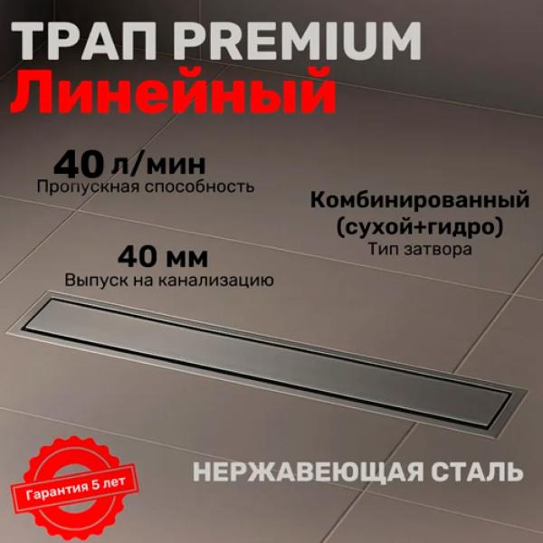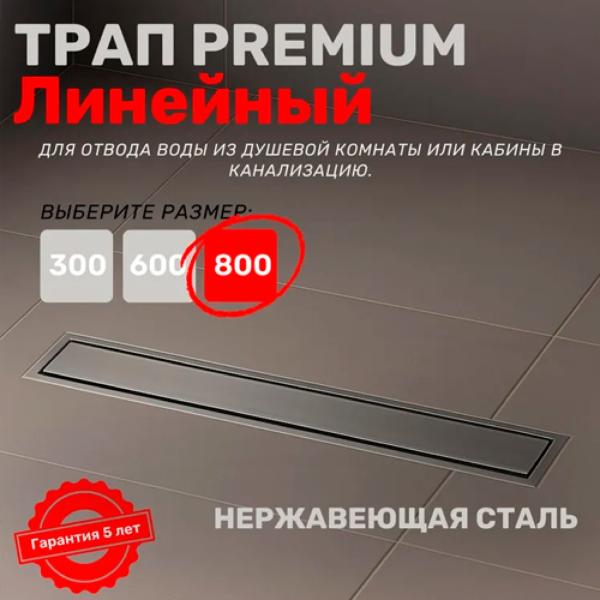 Трап лин. PR 800 мм нерж. ст. Ø40-50 мм, горизонт. отвод, комб. затв., реш. №5 из нерж. ст. VALFEX (6)