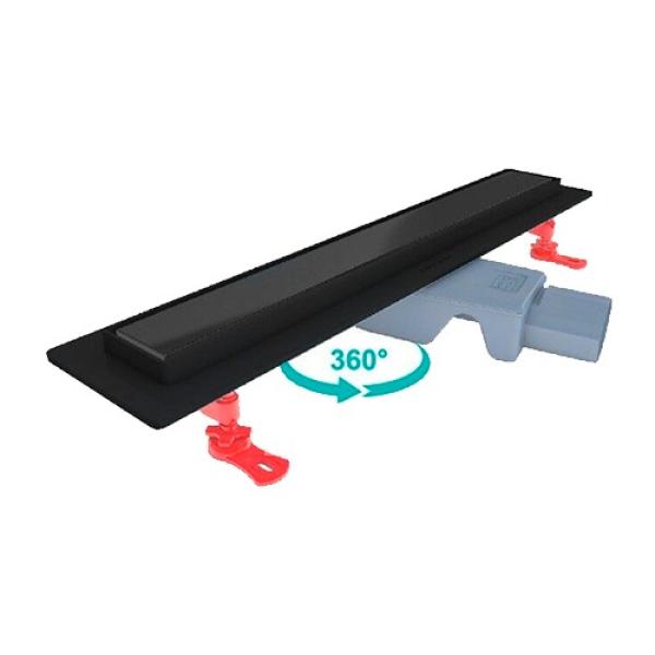 Линейный трап STARLINE TRENDY черного цвета с регулируемым на 360° отводом, длиной 600 мм. Решетка "перевертыш", сухой затвор, монтажная лента. Вес: 1.6 кг.