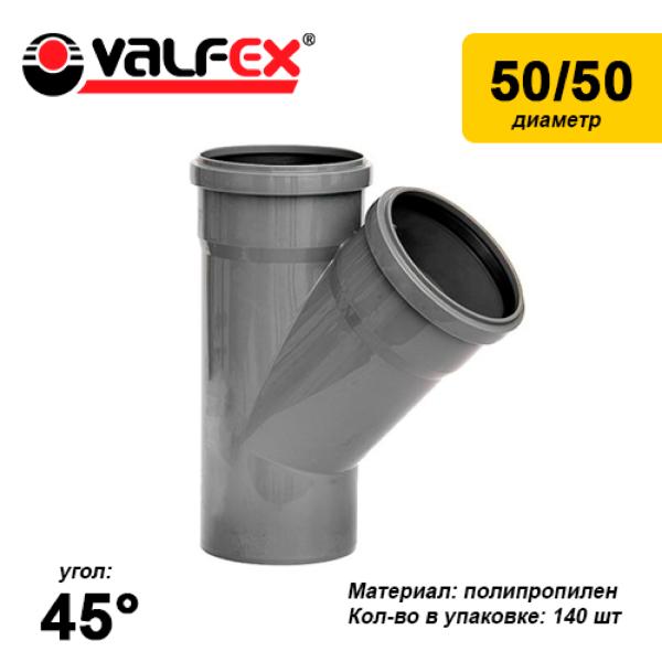 Тройник 45* 50-50 вн.канализ.(140) VALFEX