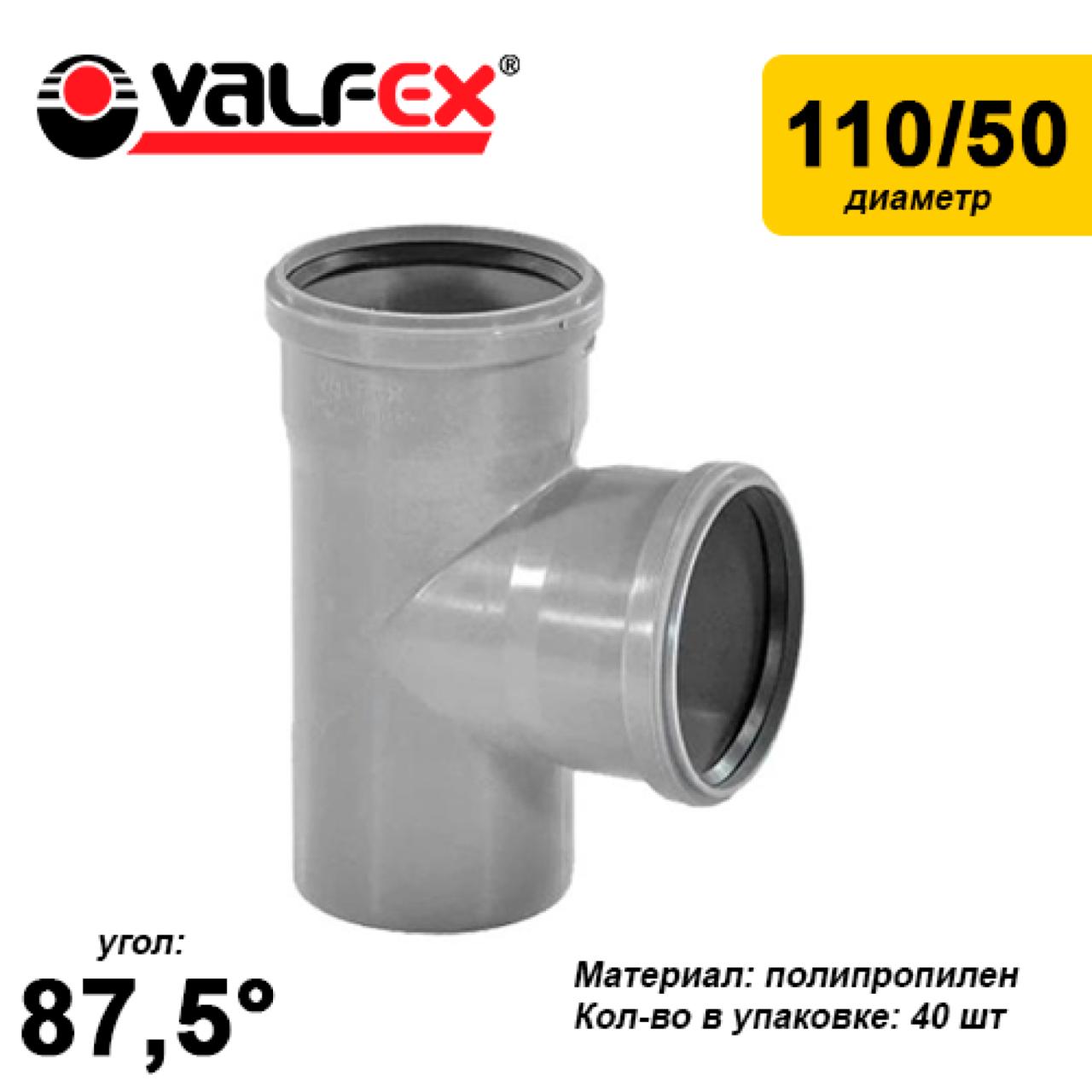 Тройник 87,5* 110-50 вн.канализ.(40) VALFEX