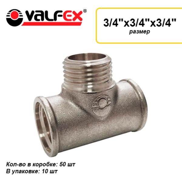 Тройник НИКЕЛИРОВАННЫЙ с переходом на наружную резьбу VALFEX ВР-НР-ВР 3/4" (50/10)