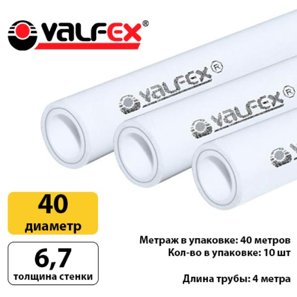 Полипропиленовые трубы Valfex предназначены для хозяйственно-питьевого водоснабжения. PP-R труба имеет низкую теплопроводность, за счет этого малые потери тепла при транспортировке теплоносителя. Трубы из полипропилена обладают хорошей шумоизоляцией при протекании по ним жидкостей, что обеспечивает комфортные условия в помещениях. Полипропиленовые трубы имеют простой монтаж: в 2-4 раза быстрее, чем монтаж металлических труб.
