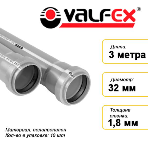 Труба BASE ф 32 с раструбом L=3 м, вн.канализ.толщ.ст.1.8 (10) VALFEX