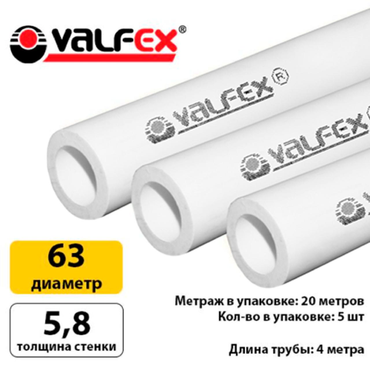 Труба SDR 11 PN 10 ф63х5.8 мм (20) (Valfex), 4м БЕЛАЯ