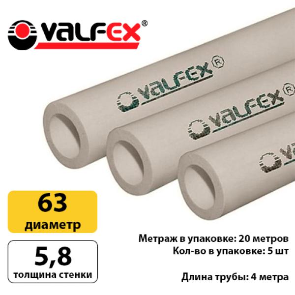 Труба SDR 11 PN 10 ф63х5,8 мм (20) (Valfex), 4м СЕРАЯ