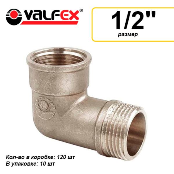 Угольник НИКЕЛИРОВАННЫЙ с переходом на наружную резьбу VALFEX ВР-НР 1/2" (120/10)