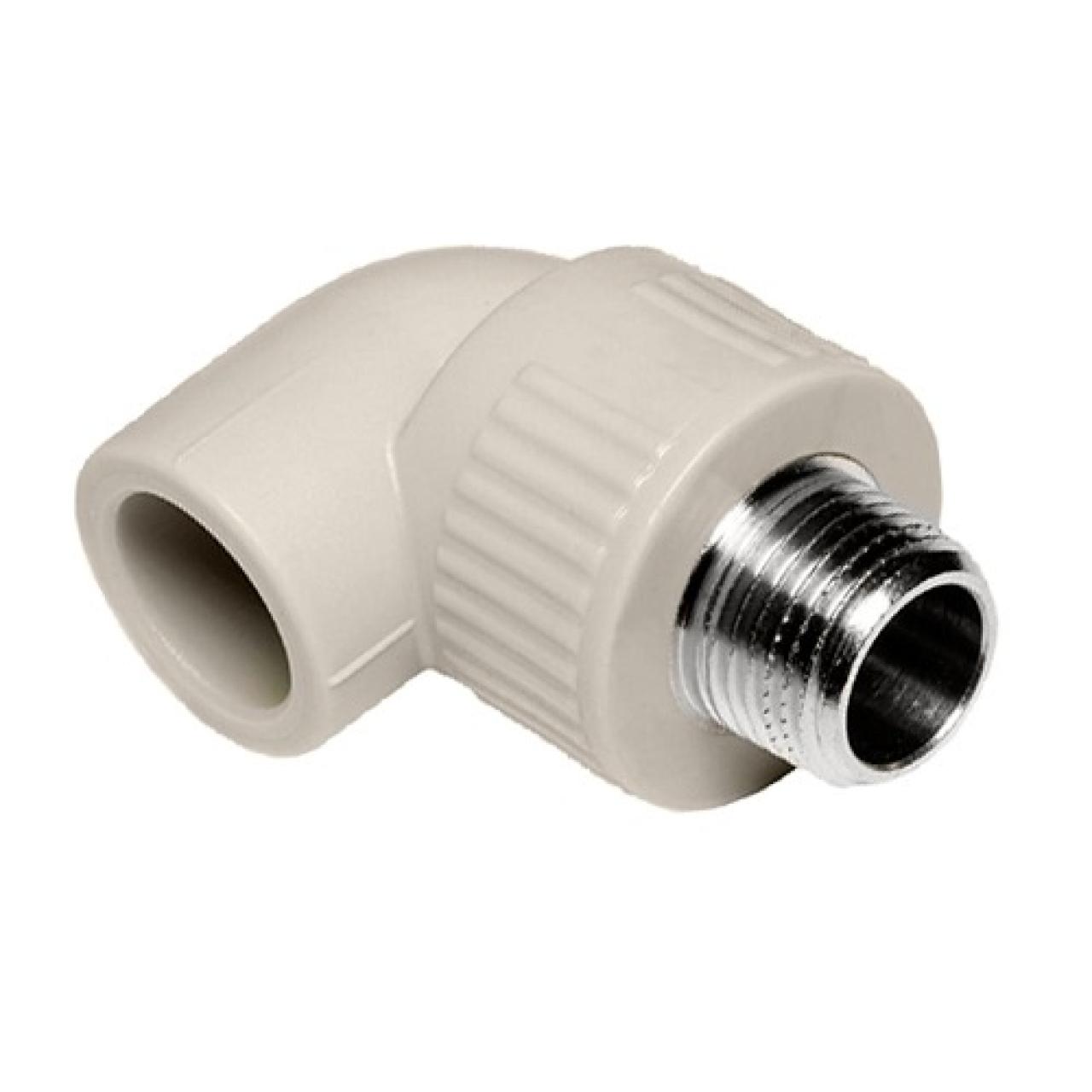 Угольник комбинированный — предназначен для соединения полипропиленовой трубы и элемента системы с резьбовым соединением. Количество в коробке 125 шт, в упаковке 25 шт.