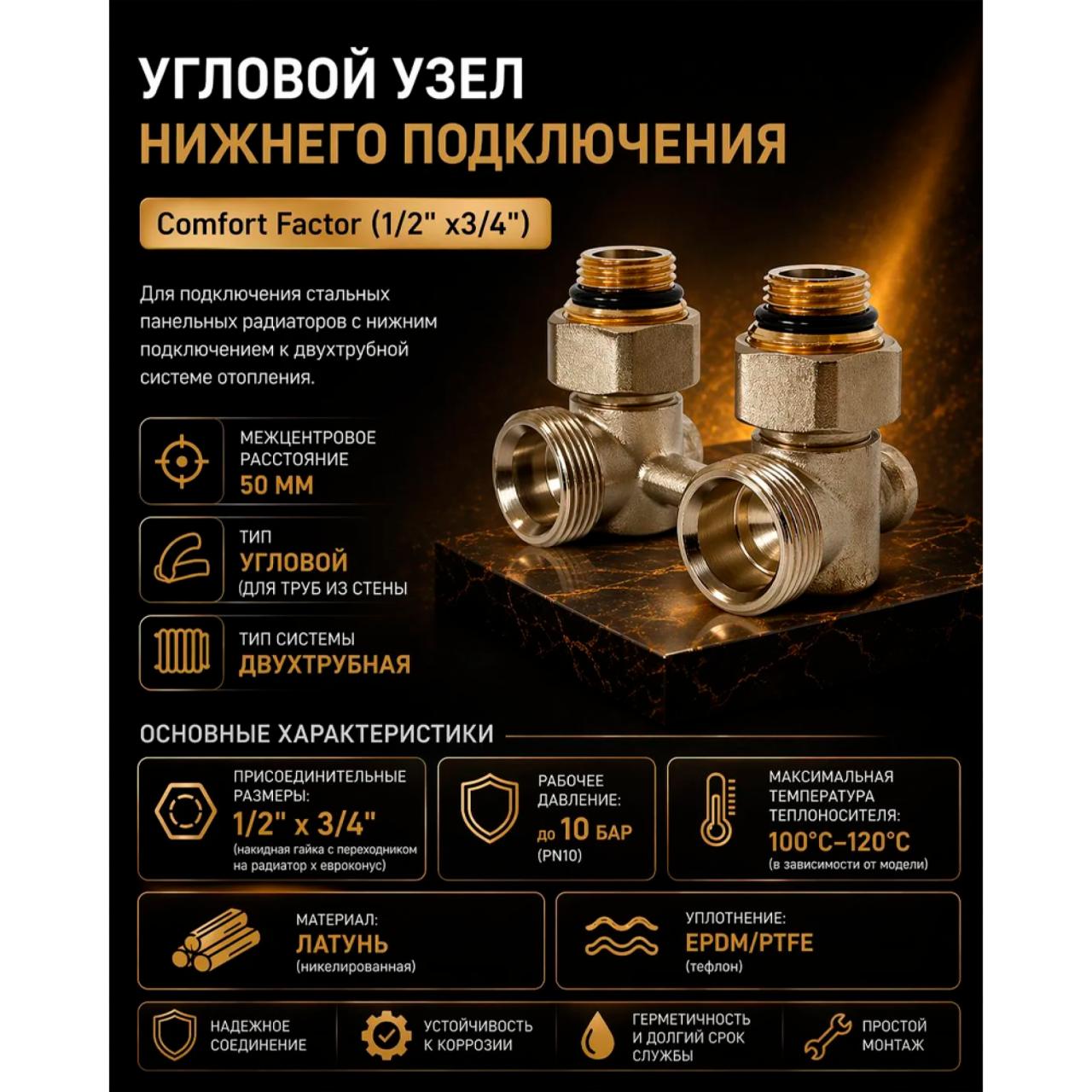 Если вы ищете надежный и качественный узел нижнего подключения для радиатора, обратите внимание на угловой узел 1/2x3/4 Comfort Factor. Этот продукт идеально подходит для создания эффективной системы отопления, обеспечивая надежное соединение и высокую производительность. Узел нижнего подключения радиатора угловой станет отличным решением для вашего дома или офиса. Узел нижнего подключения радиатора Comfort Factor выполнен из прочных материалов, что гарантирует его долговечность и устойчивость к коррозии. Благодаря своему угловому дизайну, он позволяет сэкономить пространство и легко вписывается в любую систему отопления. Этот узел подключения радиатора подходит как для новых установок, так и для замены старых элементов.