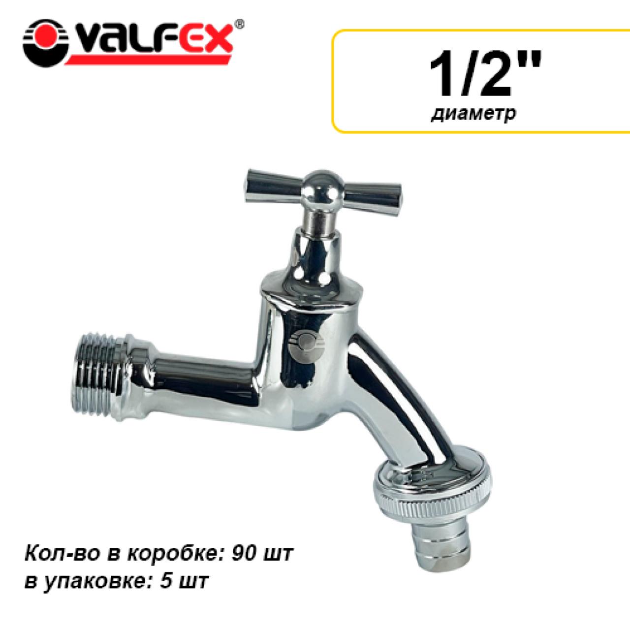 Вентиль латунный водоразборный со штуцером ручка-бабочка декор. VALFEX 1/2" НИКЕЛИРОВАННЫЙ (90/5) К