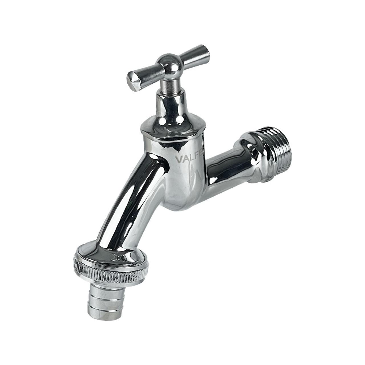 Вентиль водоразборный декорированный может быть смонтирован как внутри помещения, так и на улице. Предназначен для забора воды из промышленных и технических трубопроводов. Подойдет как для ГВС так и для ХВС. Корпус вентиля изготовлен из латуни, которая обладает хорошей коррозионной стойкостью. С одной стороны вентеля расположена наружняя резьба, с другой стороны штуцер, для подключения шланга.