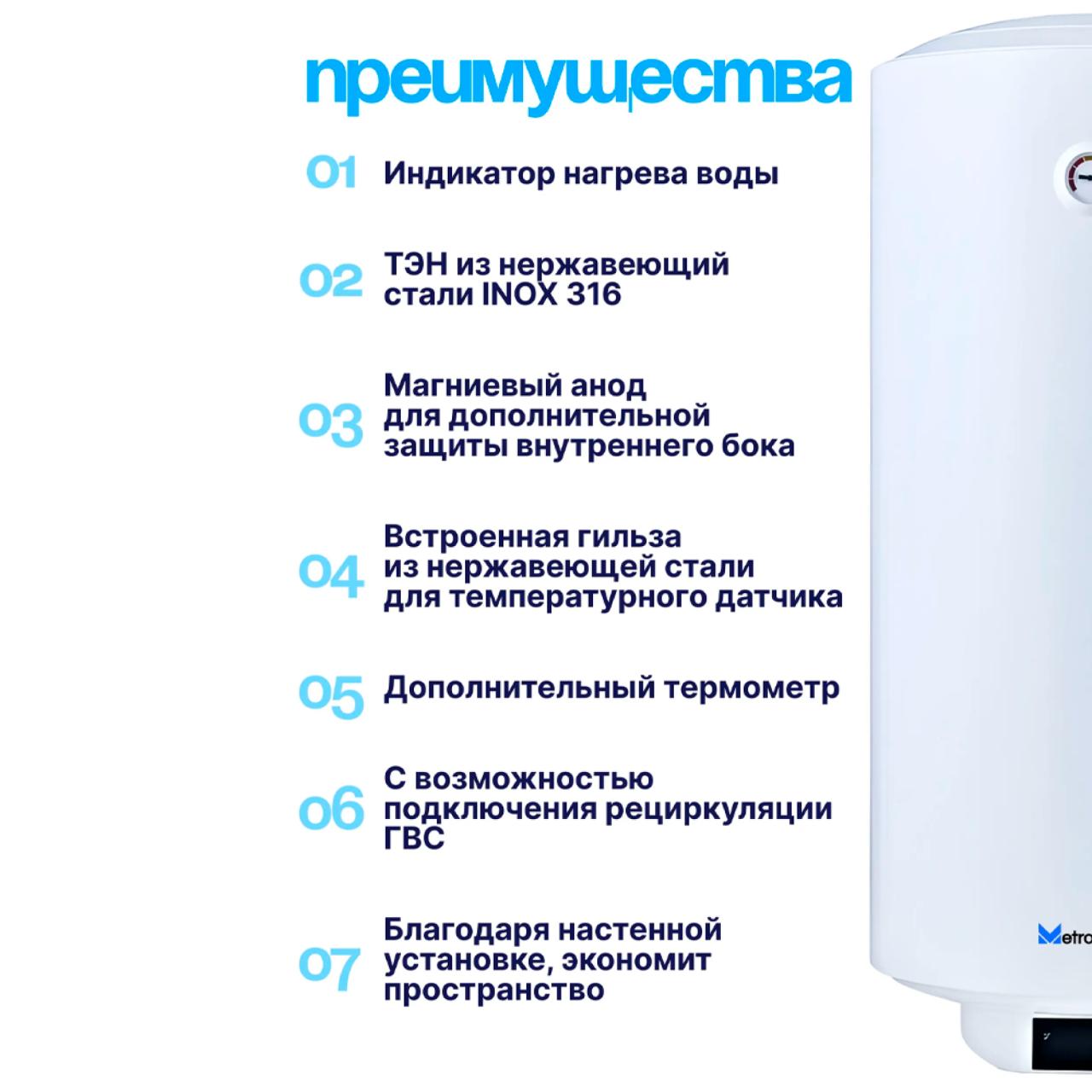 Водонагреватель косвенного нагрева Metronex MX KD 2.0kW 150 л. Уникальный дизайн. Цифровая панель управления. Индикация нагрева воды. Внутренний бак из биостеклофарфора. ТЭН из нержавеющей стали, Магниевый анод для дополнительной защиты внутреннего бака. Эффективная изоляция из пенополиуретана. Встроенная гильза из нержавеющей стали для температурного датчика. Дополнительный термометр. С возможностью подключения рециркуляции по ГВС. Благодаря настенной установке экономит пространство.