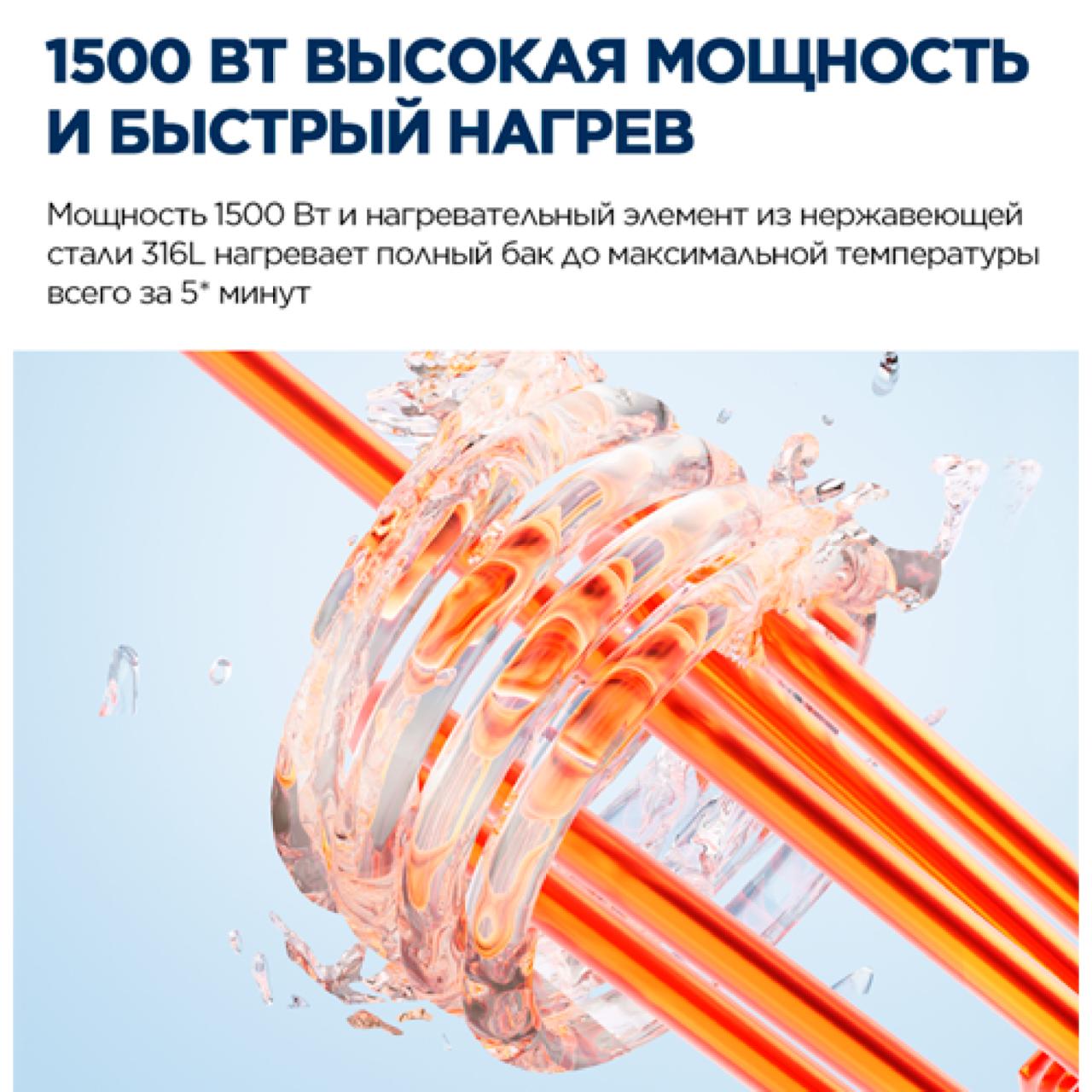 Мощность 1500 Вт позволяет устройству нагревать максимальный объем воды 5Л всего за 5* минут. Нагревательный элемент выполнен из нержавеющей стали 316L, что делает его прочным, надежным и долговечным.